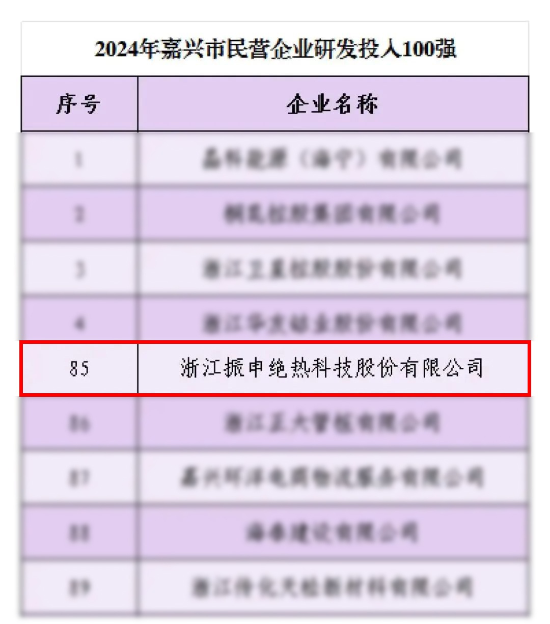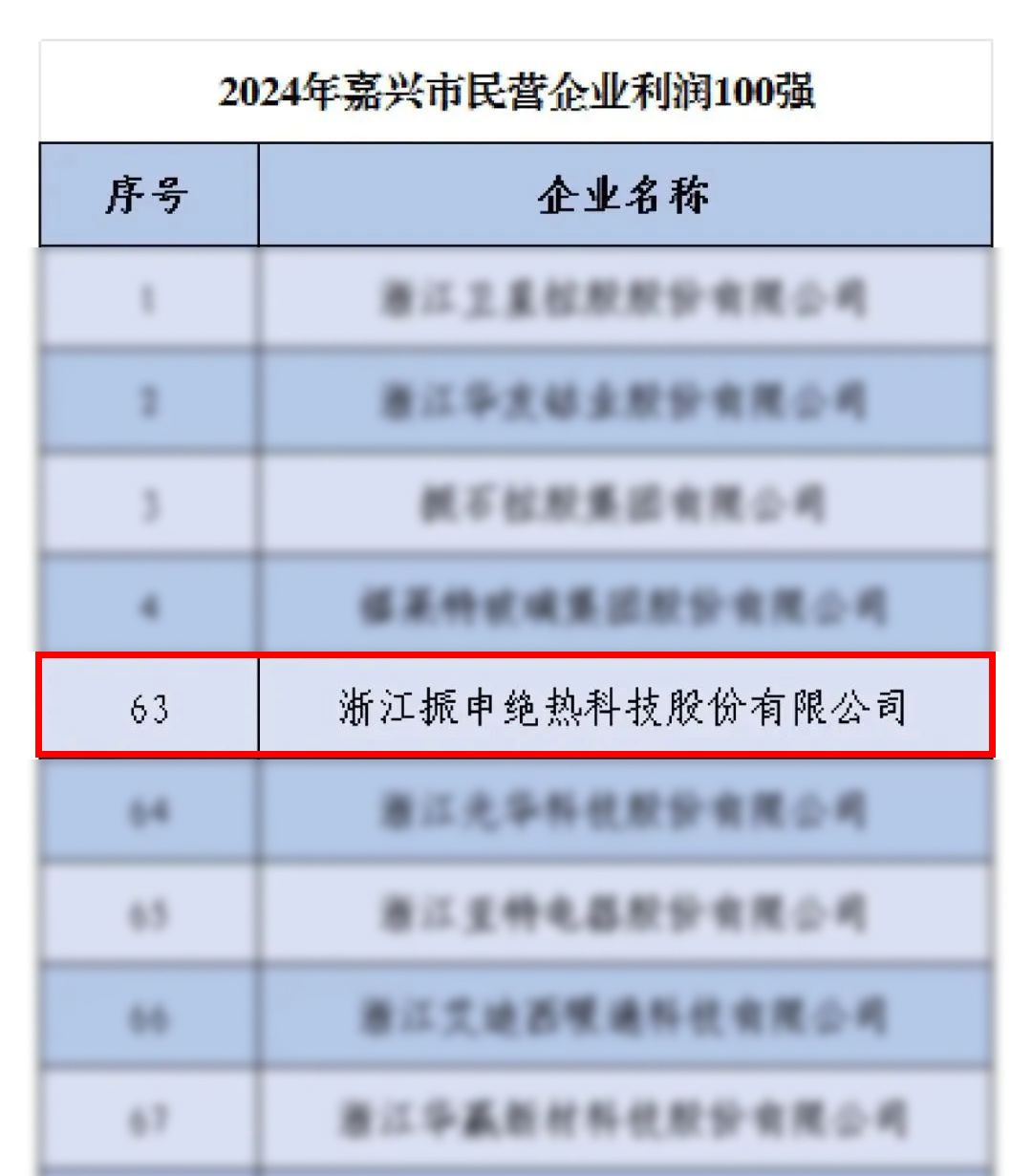 在 2024 年嘉興市民營企業的評選中,振申絕熱脫穎而出,榮登【利潤 100 強】、【研發投入 100 強】、【納稅 100 強】三張榜單!這一輝煌成就,不僅是對振申絕熱過往努力的高度認可,更是其未來發展的強大動力。