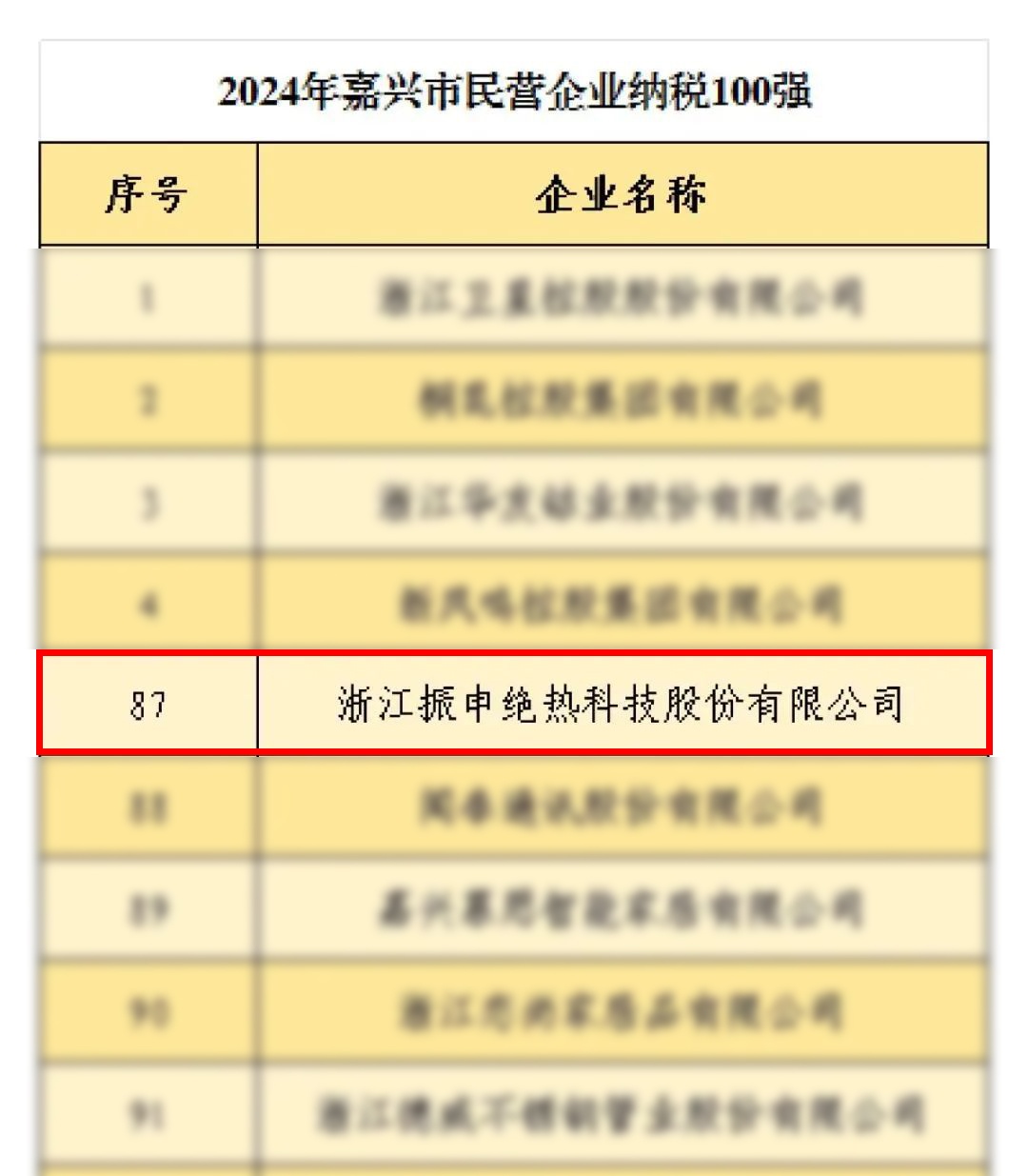 嘉興民營企業百強公布!振申絕熱再次榮登!